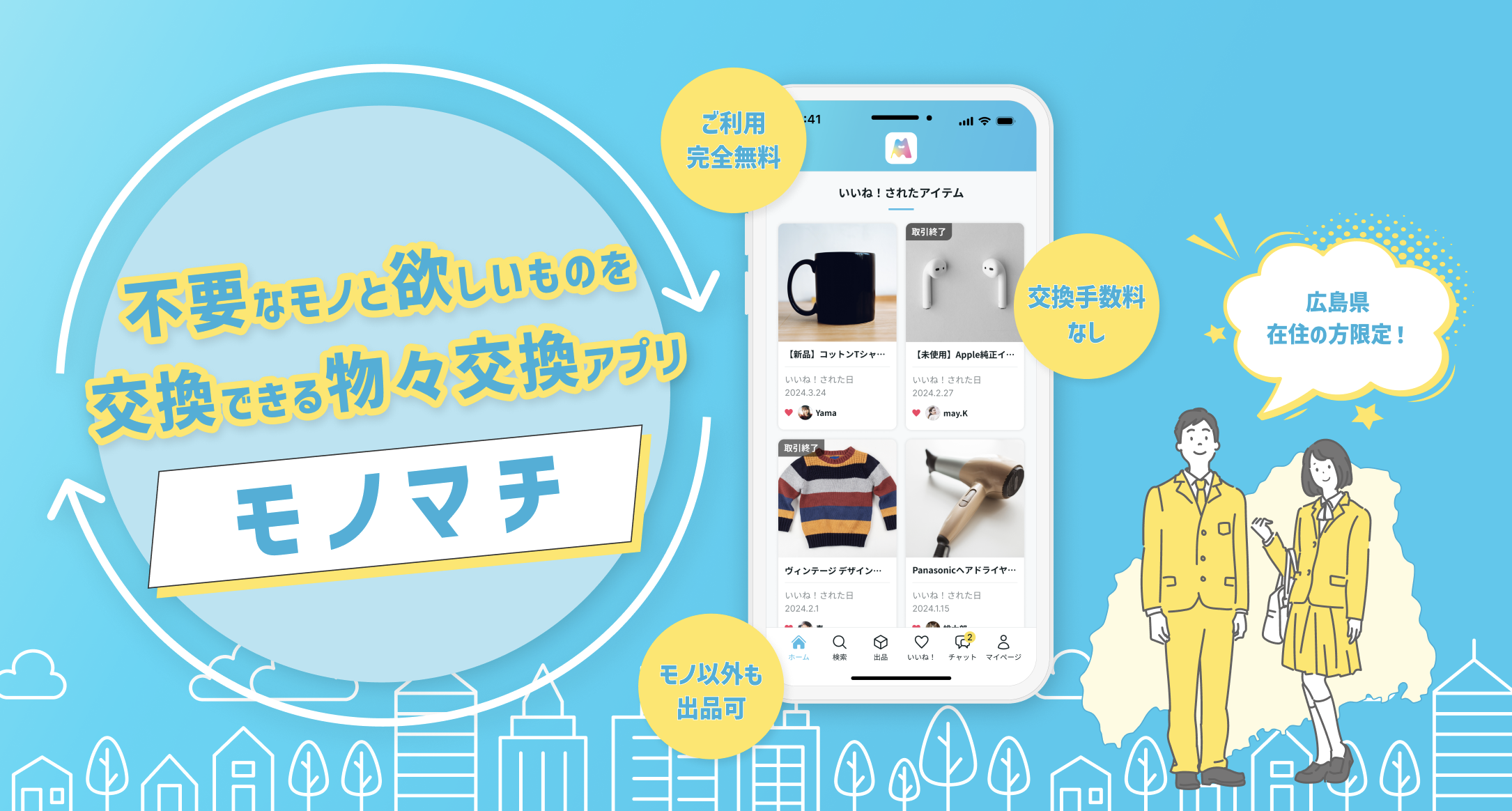 一般的なフリマアプリとは異なり、モノマチは広島県内限定のアプリです。同じ地域の仲間たちとのやり取りなので、安心してご利用いただけます。